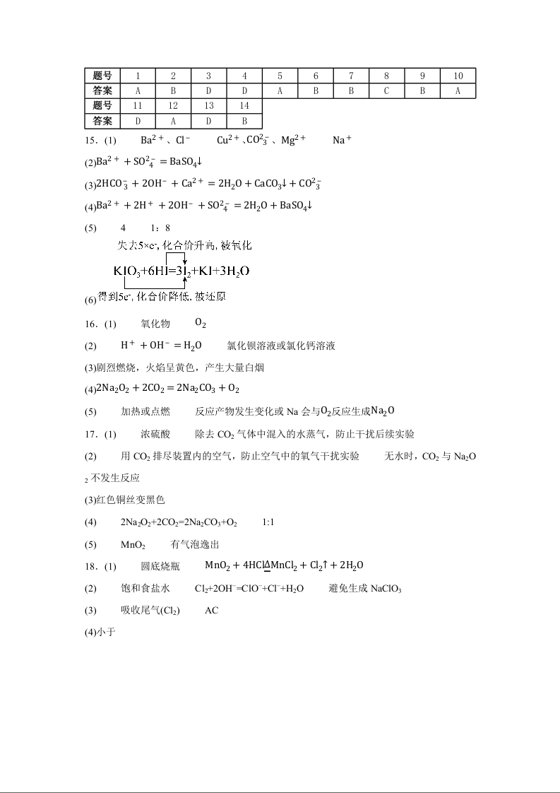 石嘴山市第一中学2025-2026学年高一年级12月月考 化学答案.docx