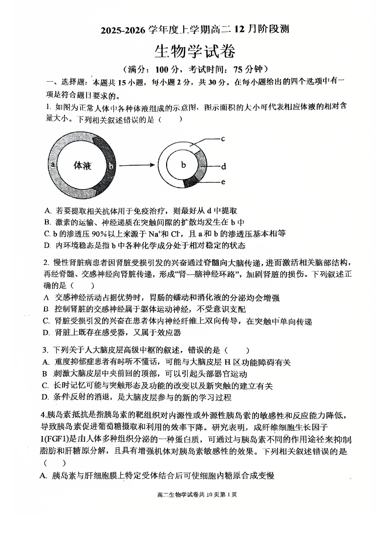 辽宁省大连市第八中学2025-2026学年高二年级12月阶段测试 生物试题(含答案).pdf