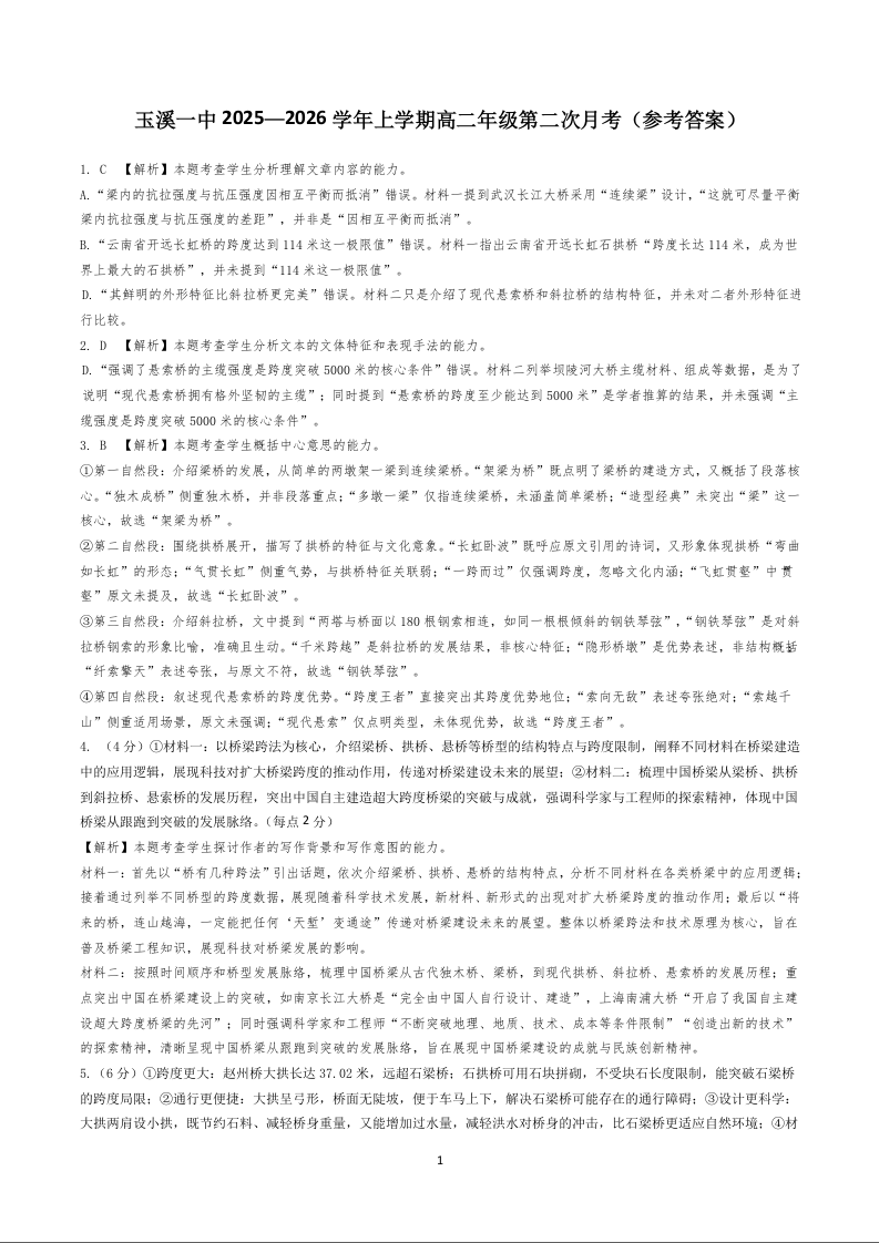 玉溪一中2025-2026学年高二年级上学期第二次月考 语文答案.docx