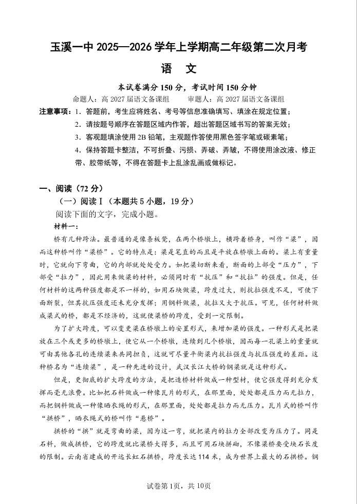 玉溪一中2025-2026学年高二年级上学期第二次月考 语文.docx