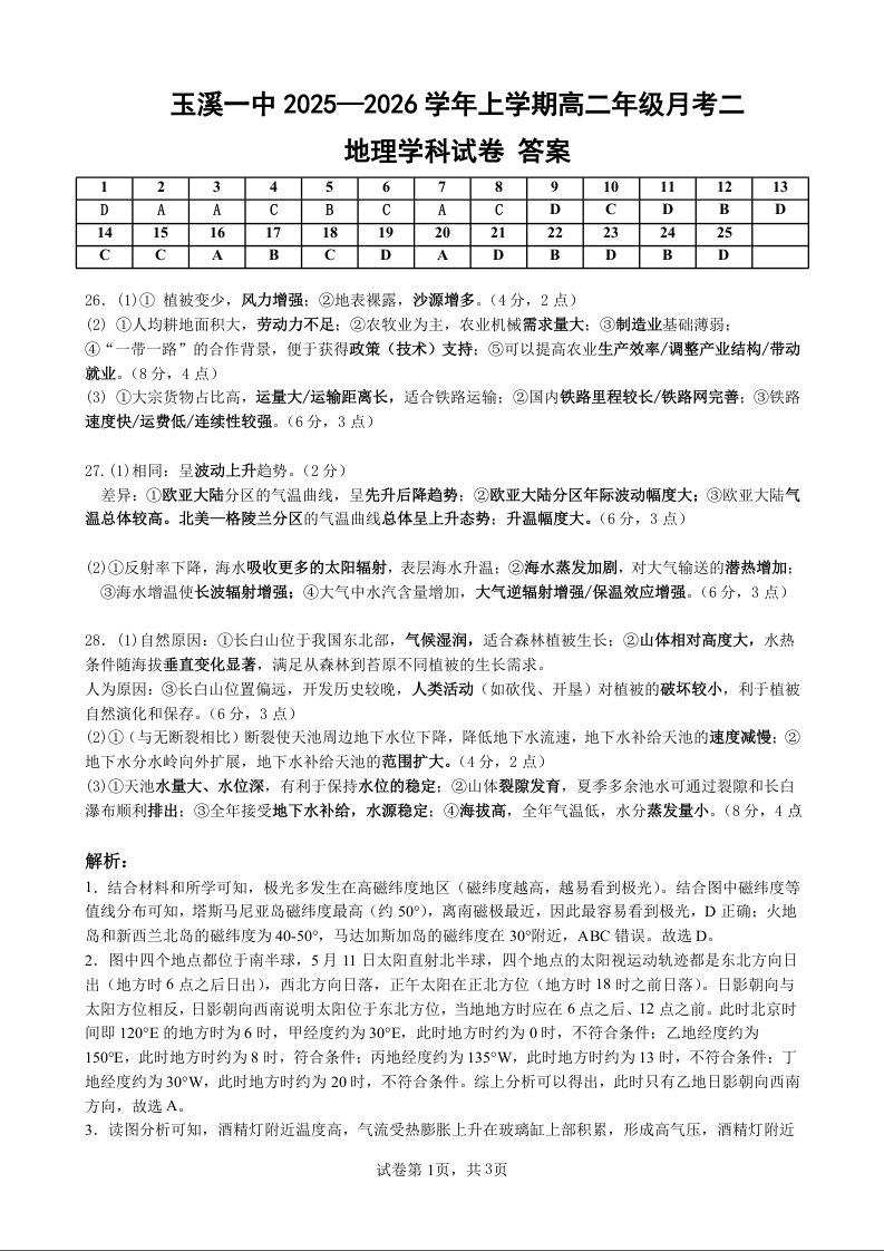玉溪一中2025-2026学年高二年级上学期第二次月考 地理答案.docx