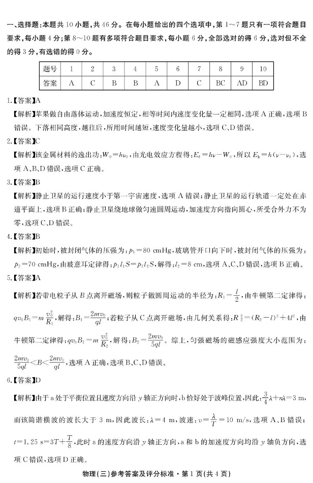 云南省名校联盟2026届高三上学期第三次联考 物理答案.pdf
