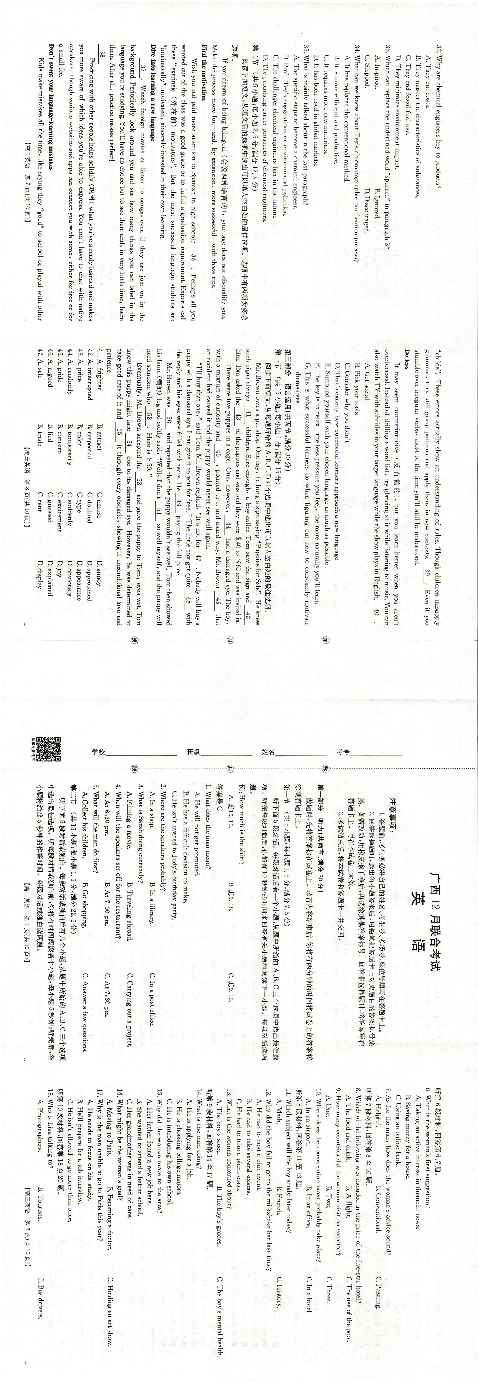 广西2025年12月高三上学期联合考试 英语.pdf