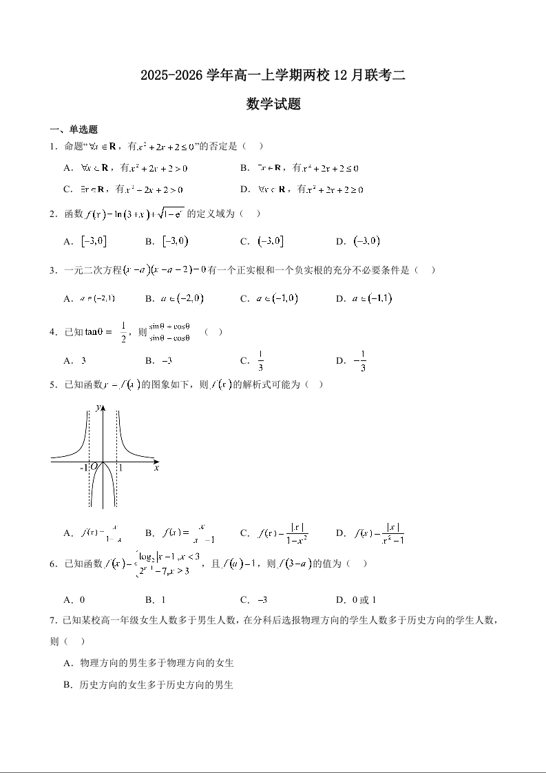 福建省泉州市晋江侨声中学、南安侨光中学2025年秋季高一年级两校联考二 数学试卷(含答案).docx