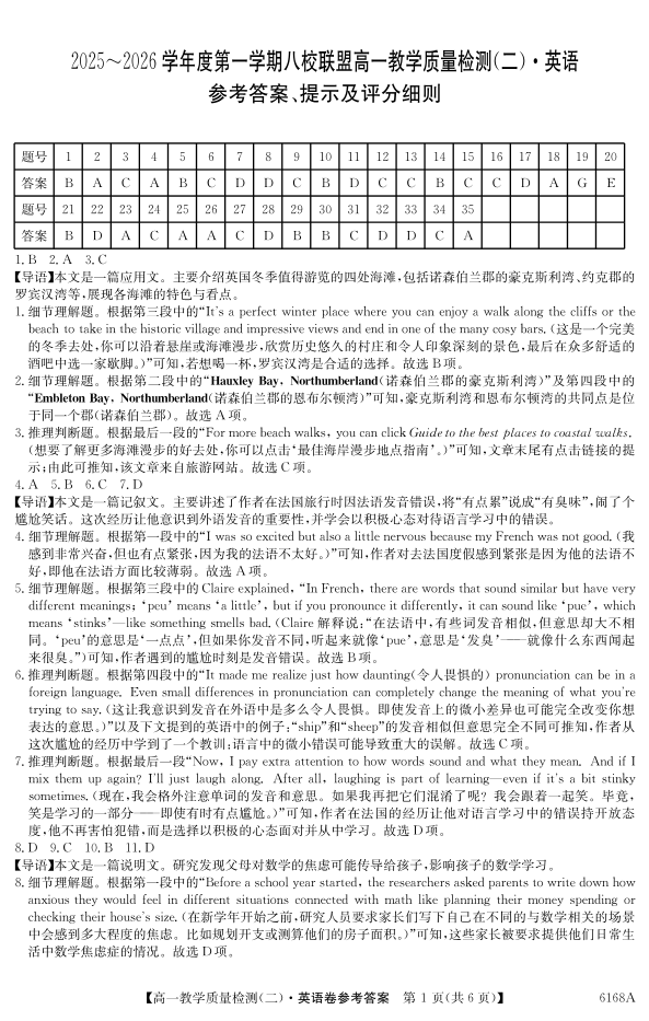 广东省·纵千文化2025~2026学年度第一学期八校联盟高一教学质量检测(二)英语答案.pdf