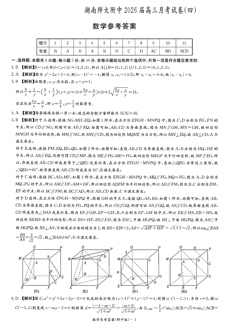 湖南师大附中2026届高三月考试卷(四)数学答案.pdf