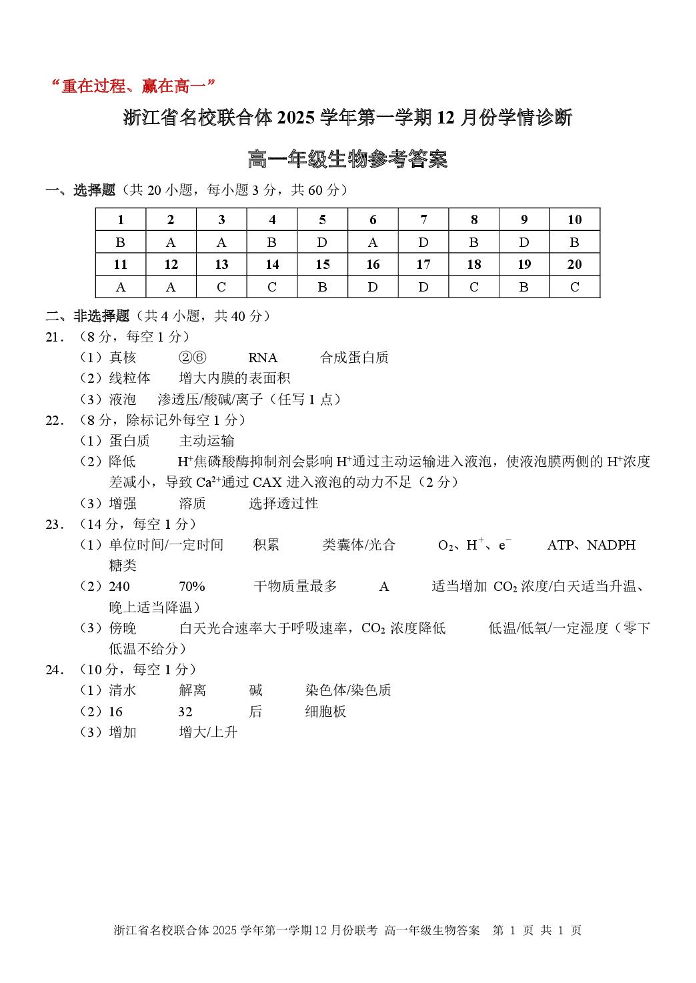 浙江省名校联合体2025学年高一上学期12月联考 生物答案.pdf