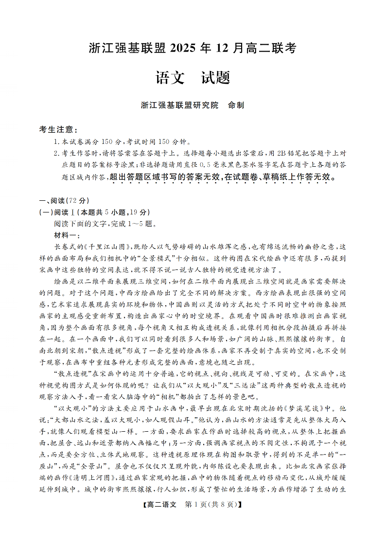 浙江省强基联盟2025年12月高二联考 语文.pdf