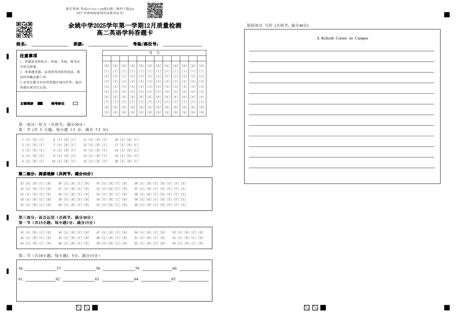 余姚中学2025学年第一学期12月质量检测 高二英语答题卡.pdf
