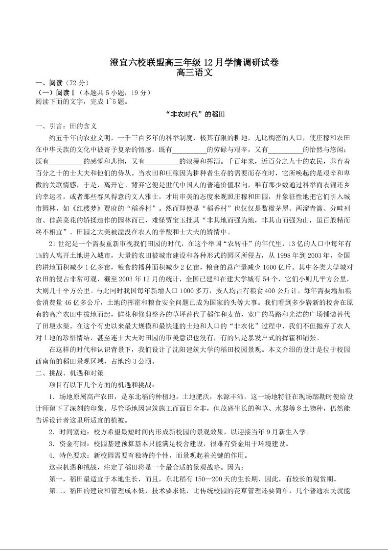 无锡市澄宜六校联盟2025-2026学年高三年级12月学情调研 语文.docx