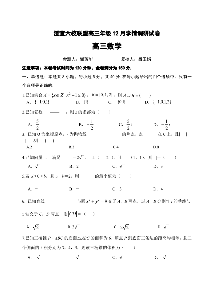 无锡市澄宜六校联盟2025-2026学年高三年级12月学情调研 数学.pdf