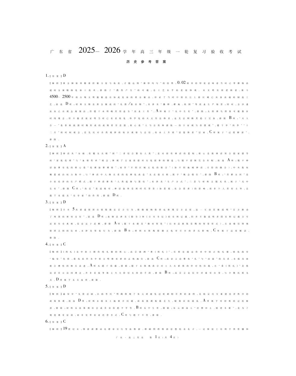 广东省2025—2026学年高三上学期一轮复习验收考试 历史答案.pdf