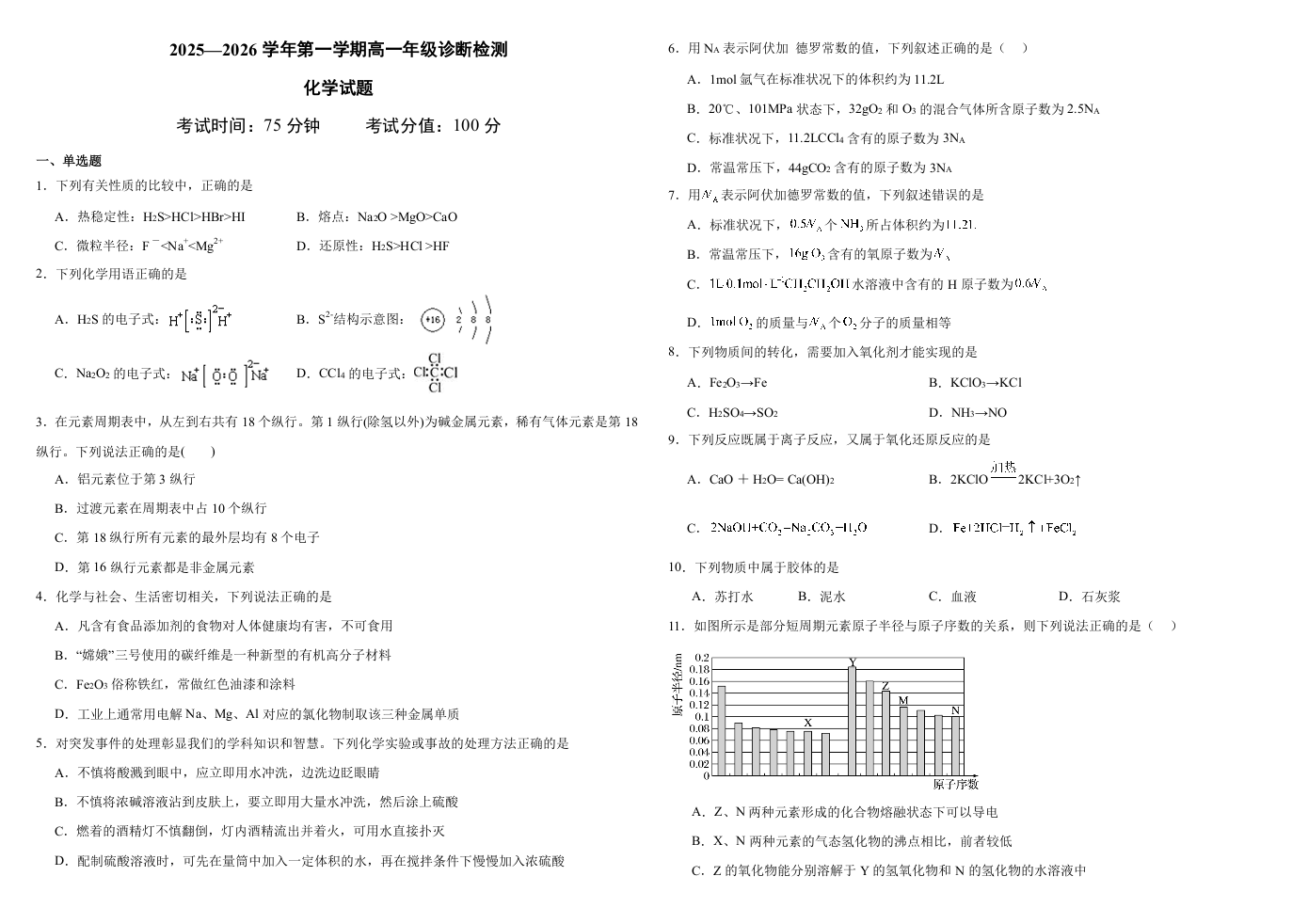 内蒙古自治区鄂尔多斯市第一中学2025-2026学年高一上学期12月月考 化学.docx