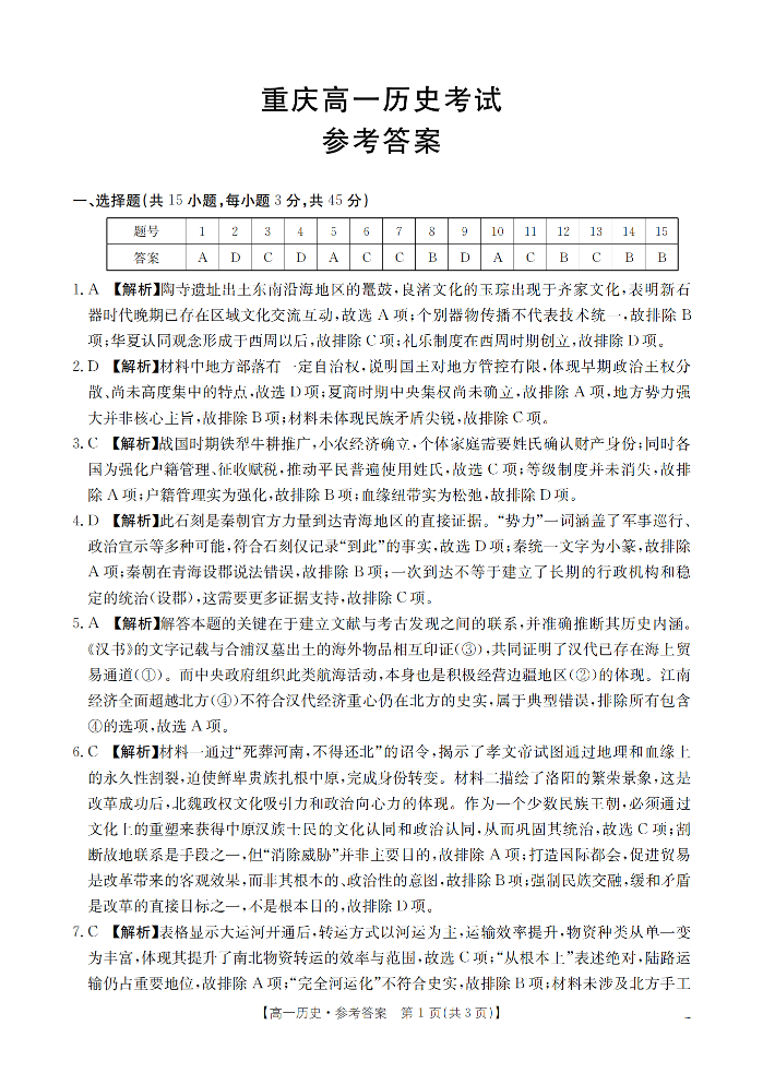 重庆市2025-2026学年高一上学期12月考试 历史答案.pdf