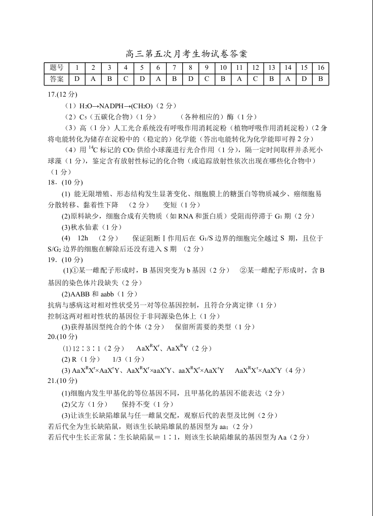 银川一中2024-2025学年高三上学期第五次月考 生物答案.docx