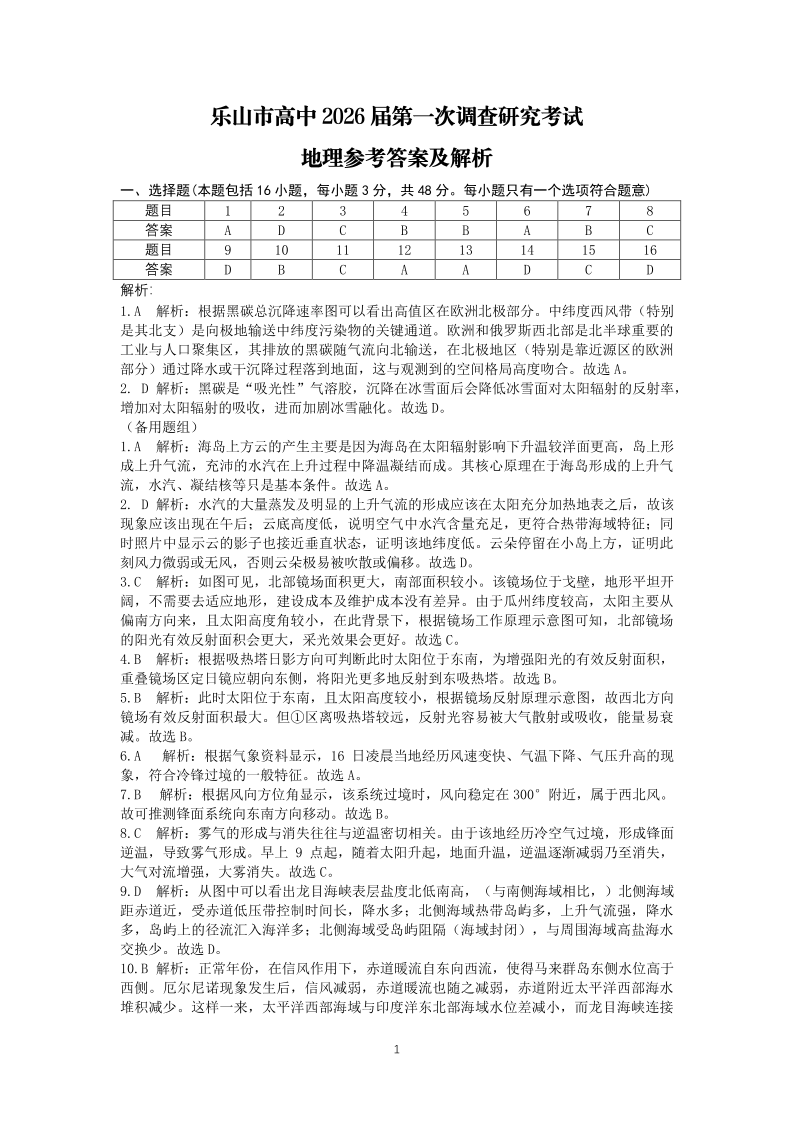四川省乐山市高中2023级第一次调查研究考试 地理答案.pdf