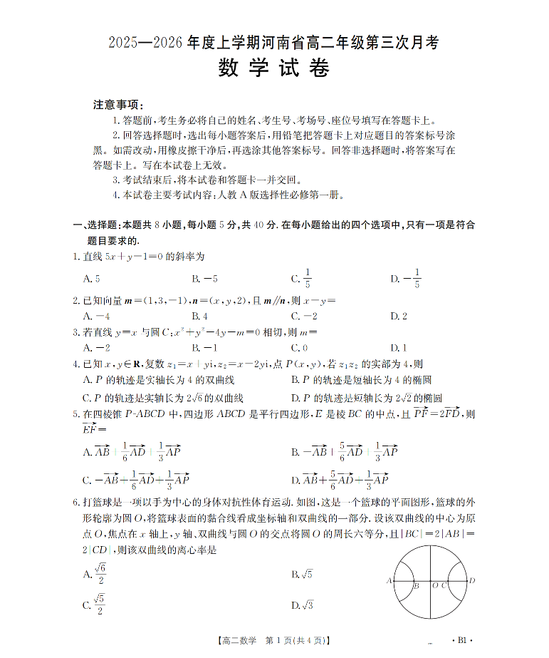 河南省2025-2026年度高二年级上学期第三次月考试卷 数学.pdf