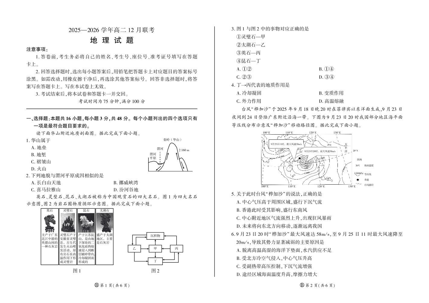 河南省百师联盟2027届高二上学期12月联考 地理(B卷).pdf