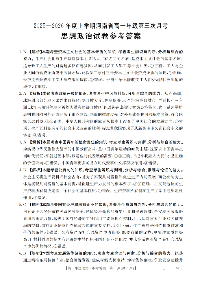 河南省2025-2026年度高一年级上学期第三次月考试卷 政治答案.pdf