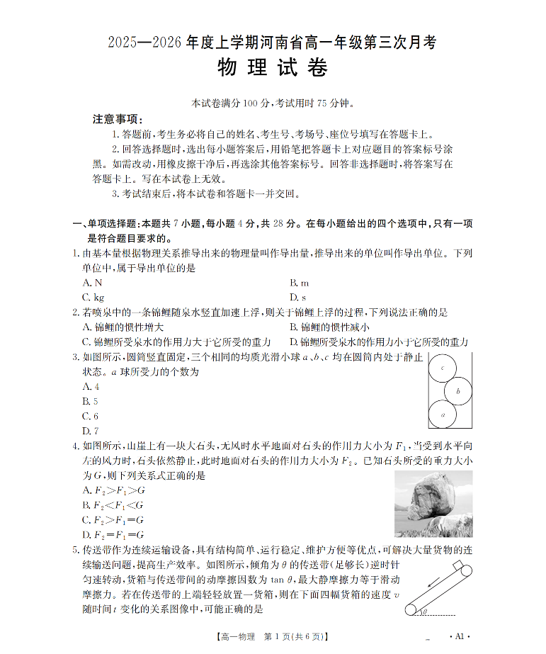 河南省2025-2026年度高一年级上学期第三次月考试卷 物理.pdf