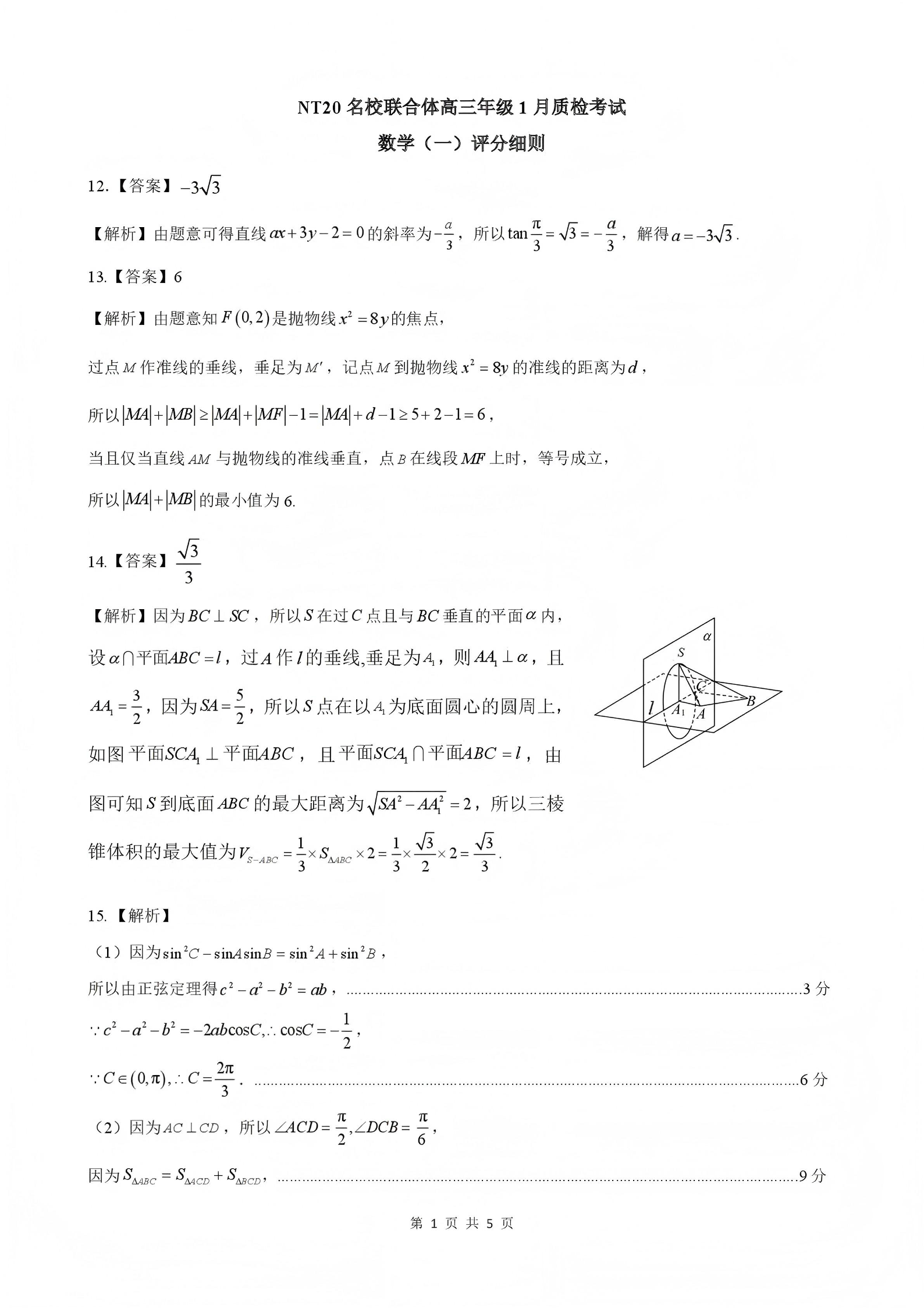 NT20名校联合体高三年级1月质检考试 数学评分细则.pdf