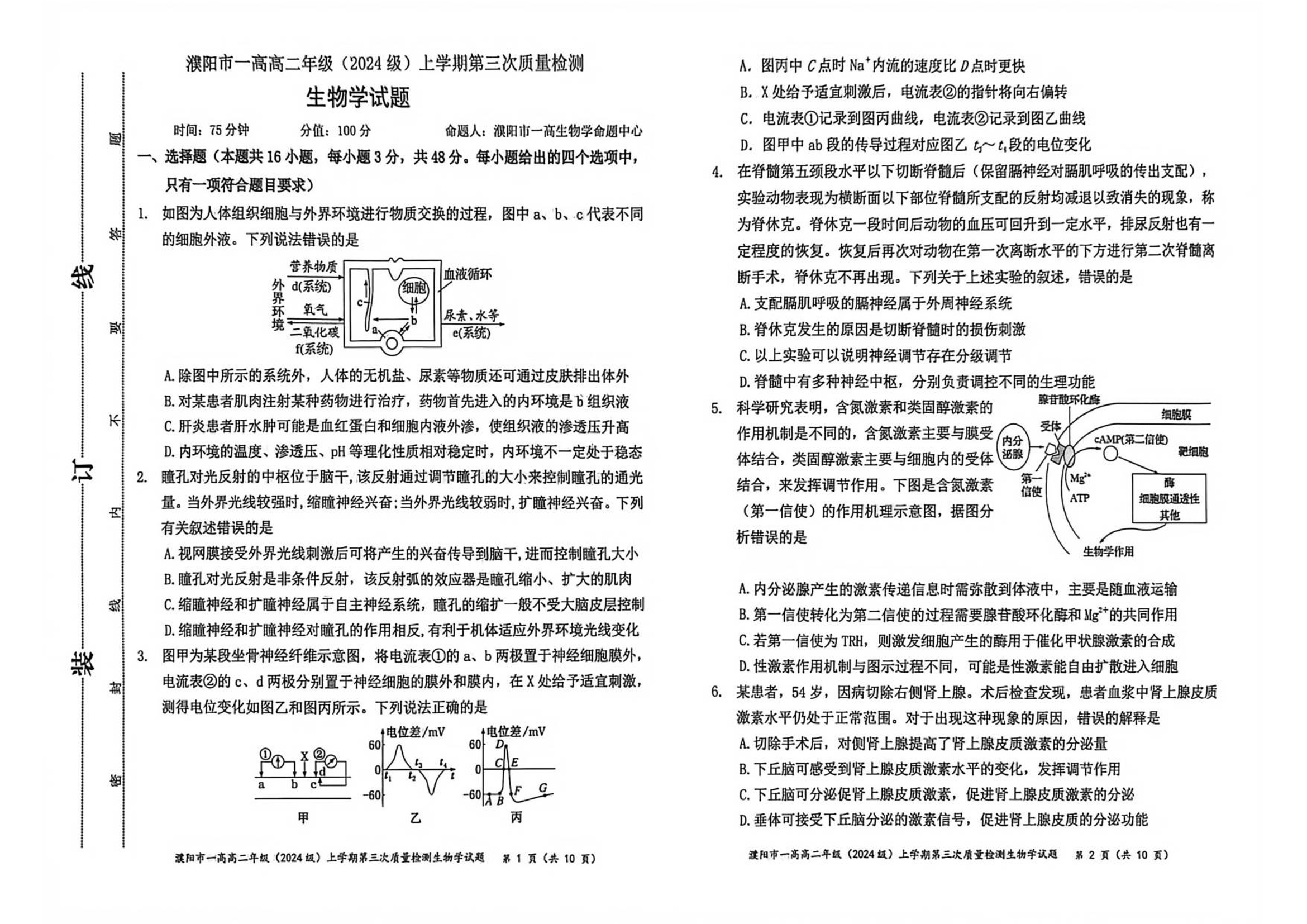 濮阳市一高2024级高二上学期第三次质量检测 生物.pdf