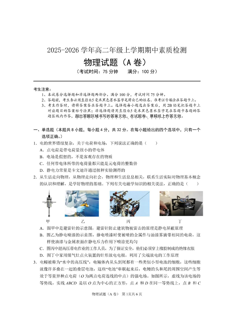 安徽师范大学附属中学2025-2026学年高二上学期期中考试 物理试题(含答案).pdf