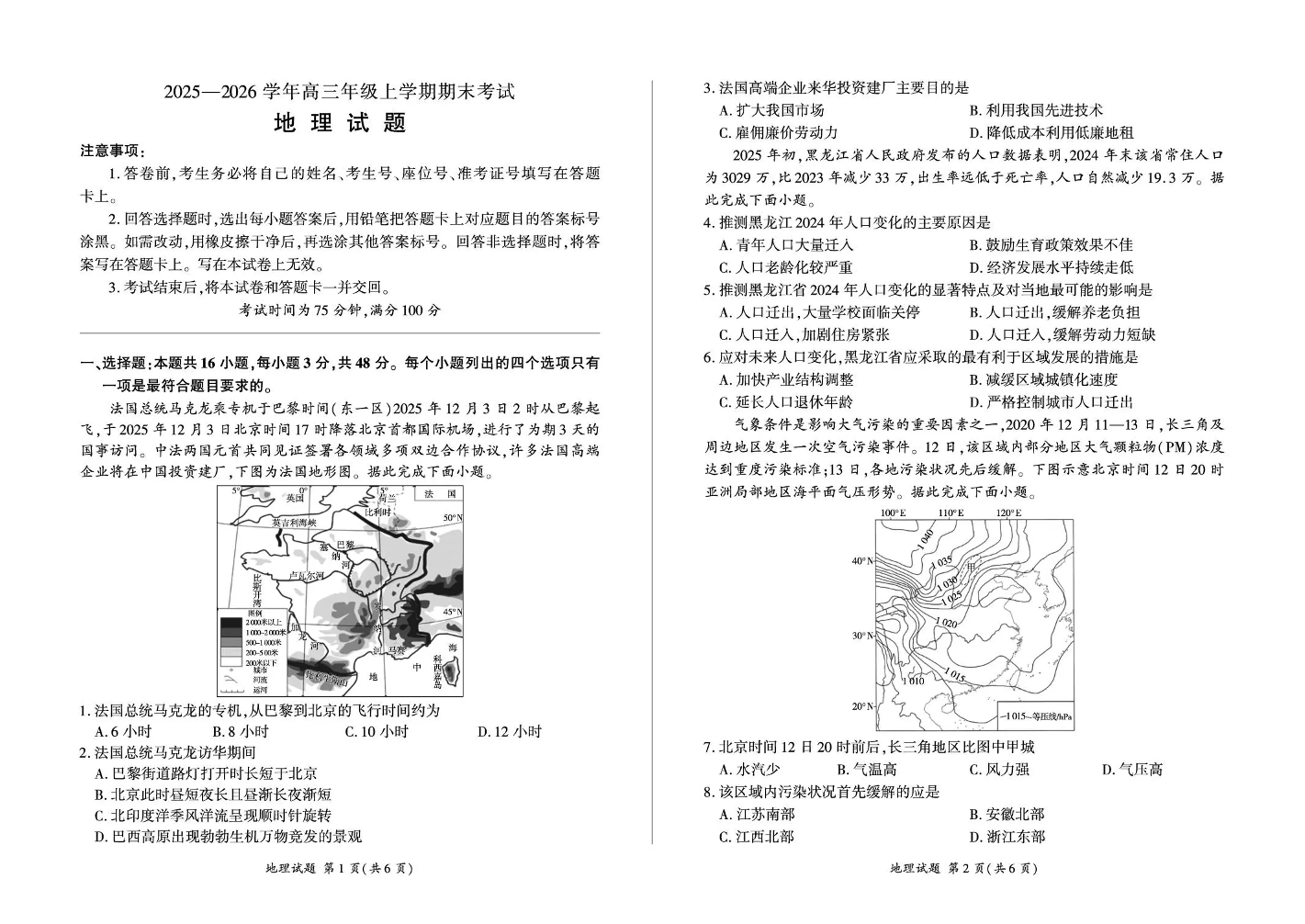 百师联盟2025—2026学年高三年级上学期期末考试 地理.pdf