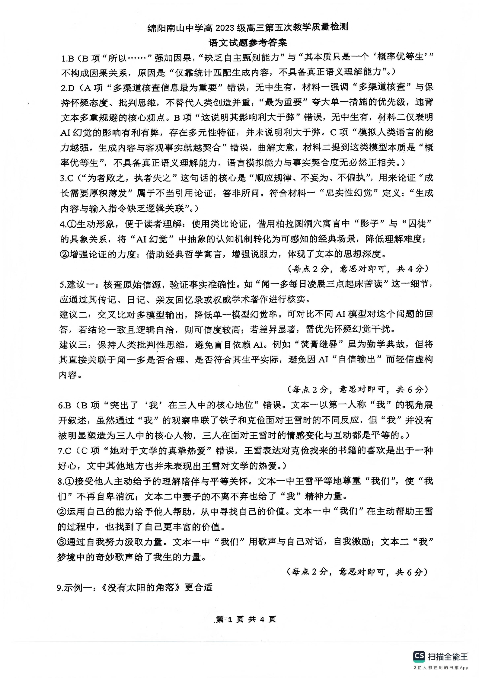 绵阳南山中学高2023级高三第五次教学质量检测 语文答案.pdf