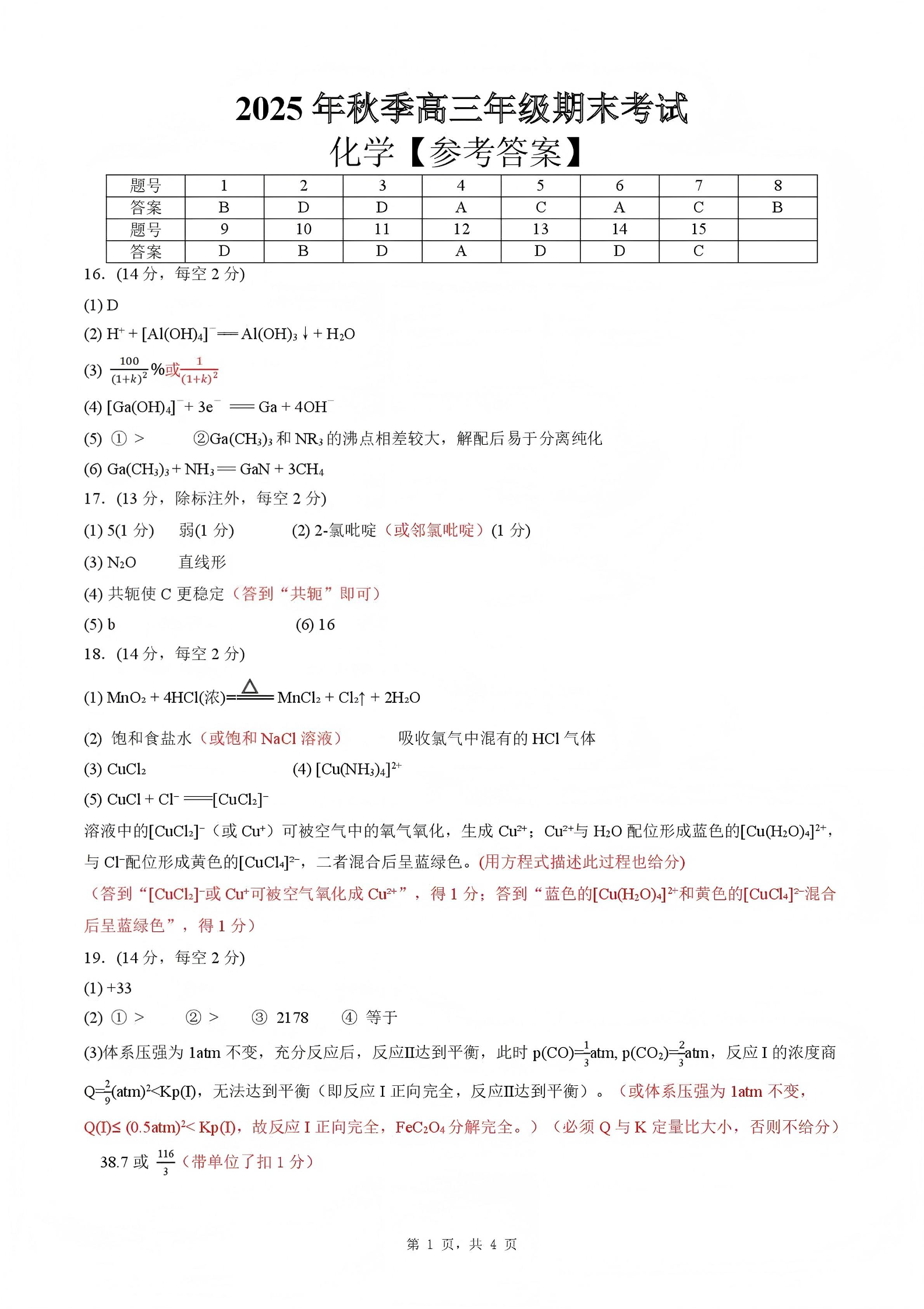 黄冈市2025年秋季高三年级1月期末考试 化学答案.pdf