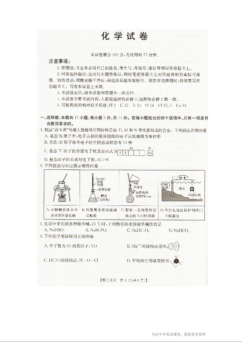 辽宁省抚顺市六校协作体2025-2026学年度高二上学期期末联考 化学.docx