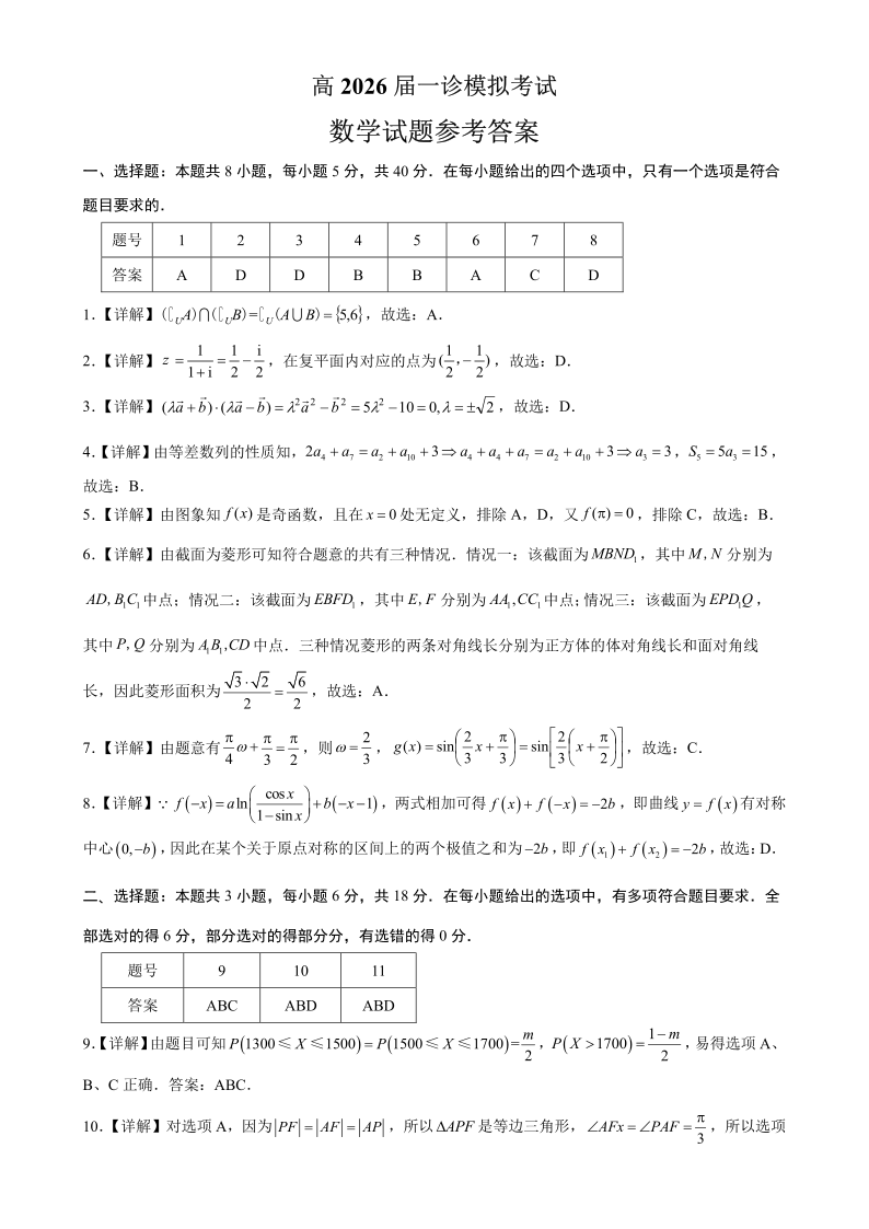 育才中学校高2026届一诊模拟考试 数学答案.pdf