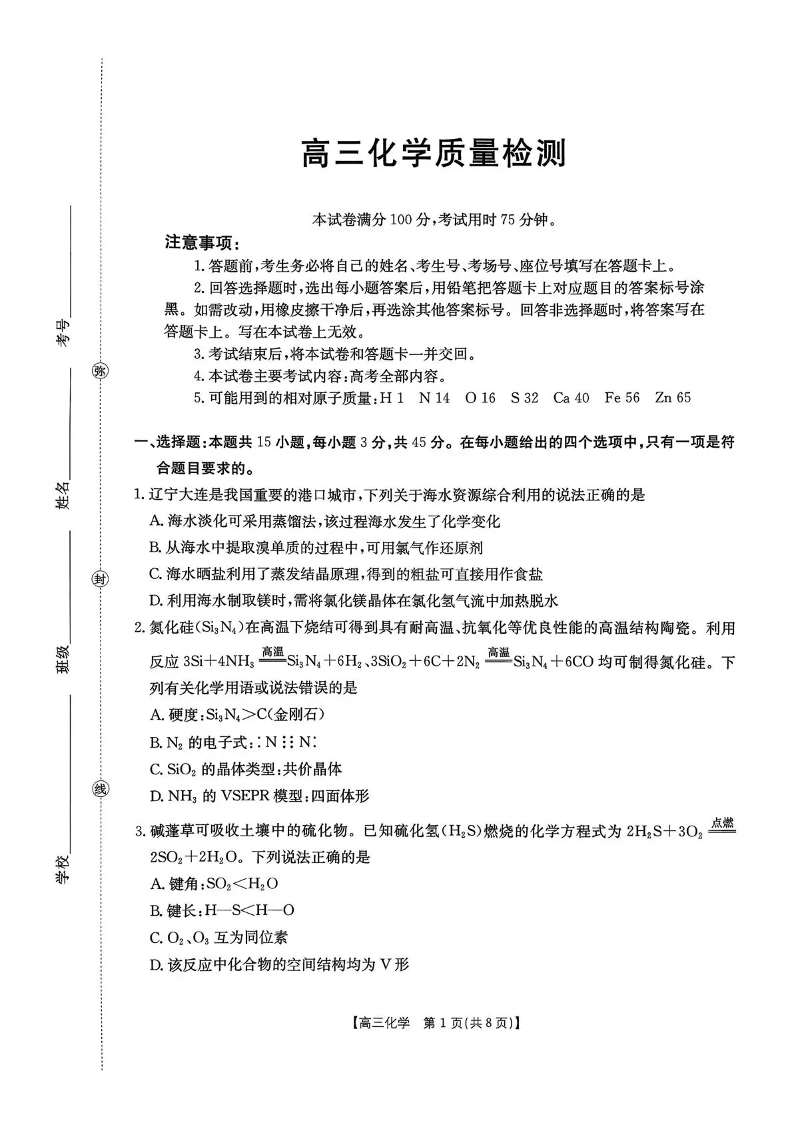 辽宁省辽阳市2026届高三上学期1月期末考试 化学.pdf