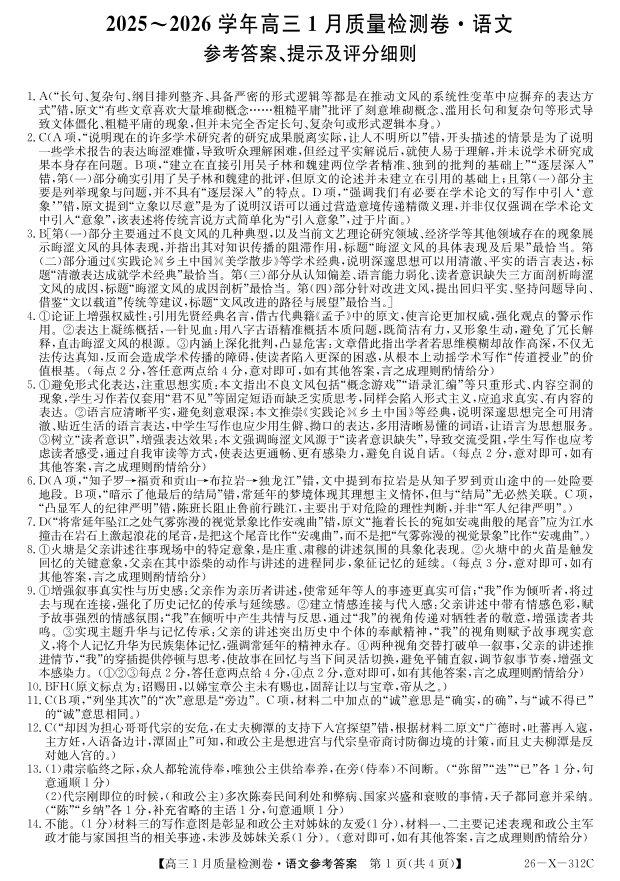 三晋卓越联盟2025~2026学年高三1月质量检测卷 语文答案.pdf