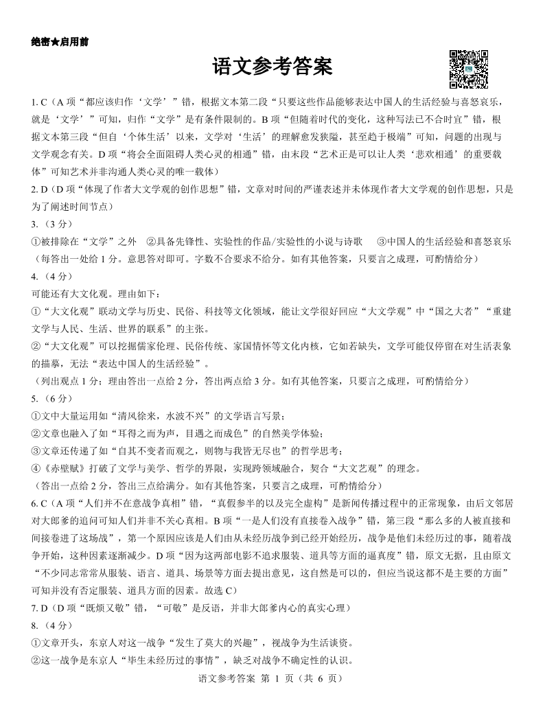 名校教研联盟2026届高三元月联考 语文参考答案.pdf