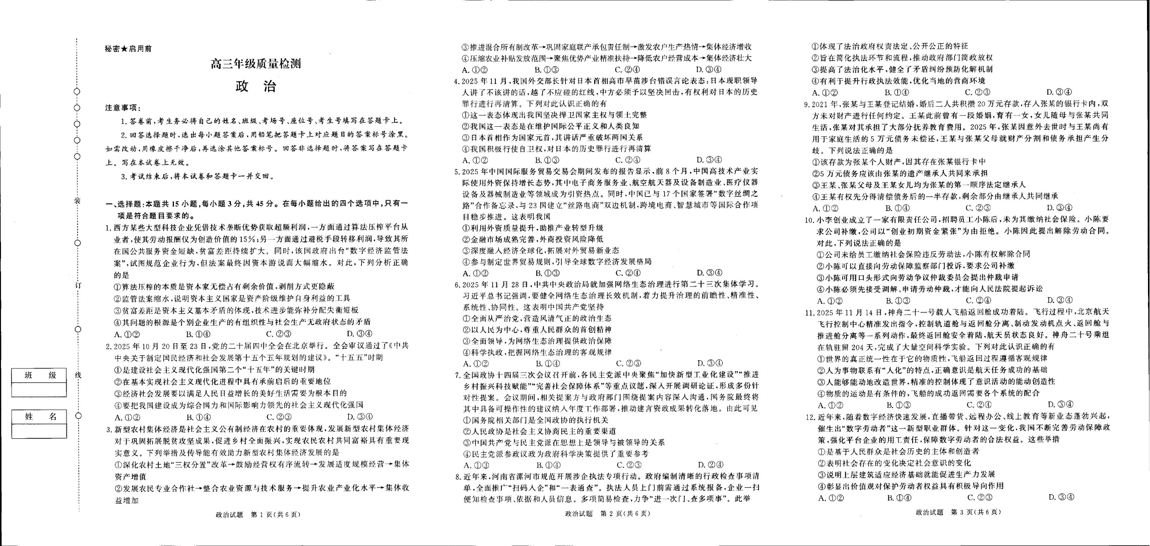 河南省青桐鸣大联考2025-2026学年高三上学期1月月考 政治.pdf