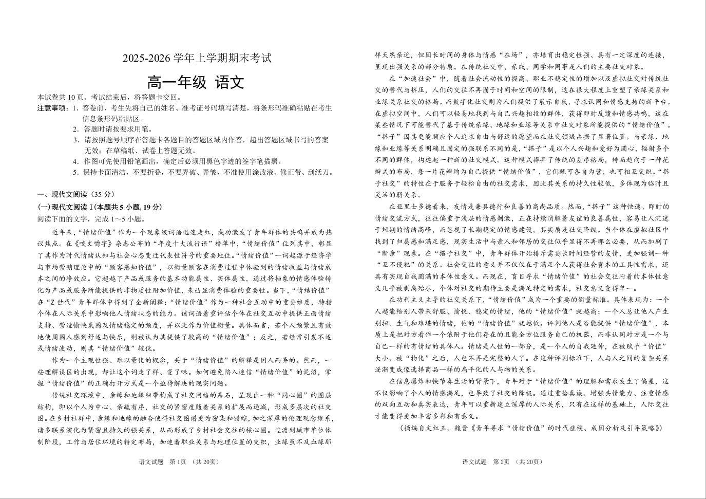 吉林省长春外国语学校2025-2026学年高一上学期期末考试 语文试题(含答案).doc