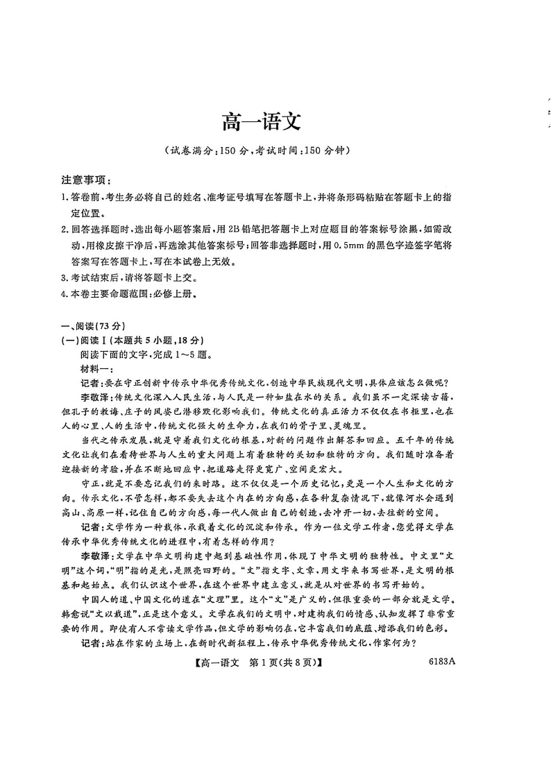 吉林市外五县2025-2026学年高一上学期1月期末考试 语文试题(含答案).pdf