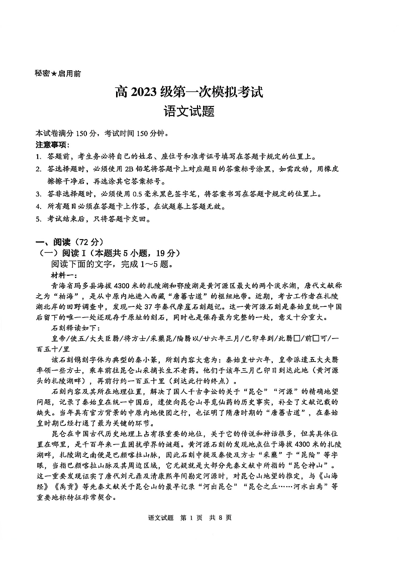 四川省广安市高2023级第一次模拟考试 语文.pdf