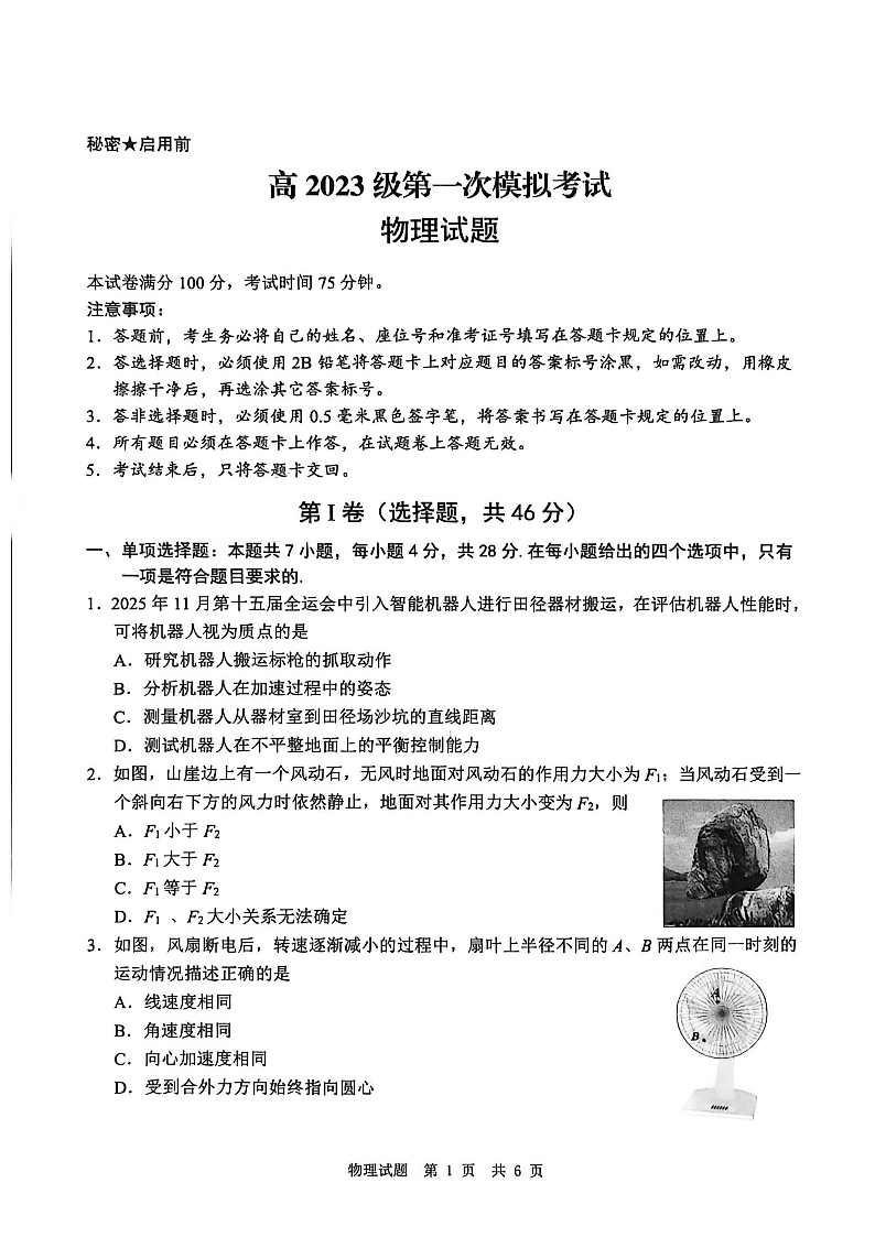 四川省广安市高2023级第一次模拟考试 物理.pdf
