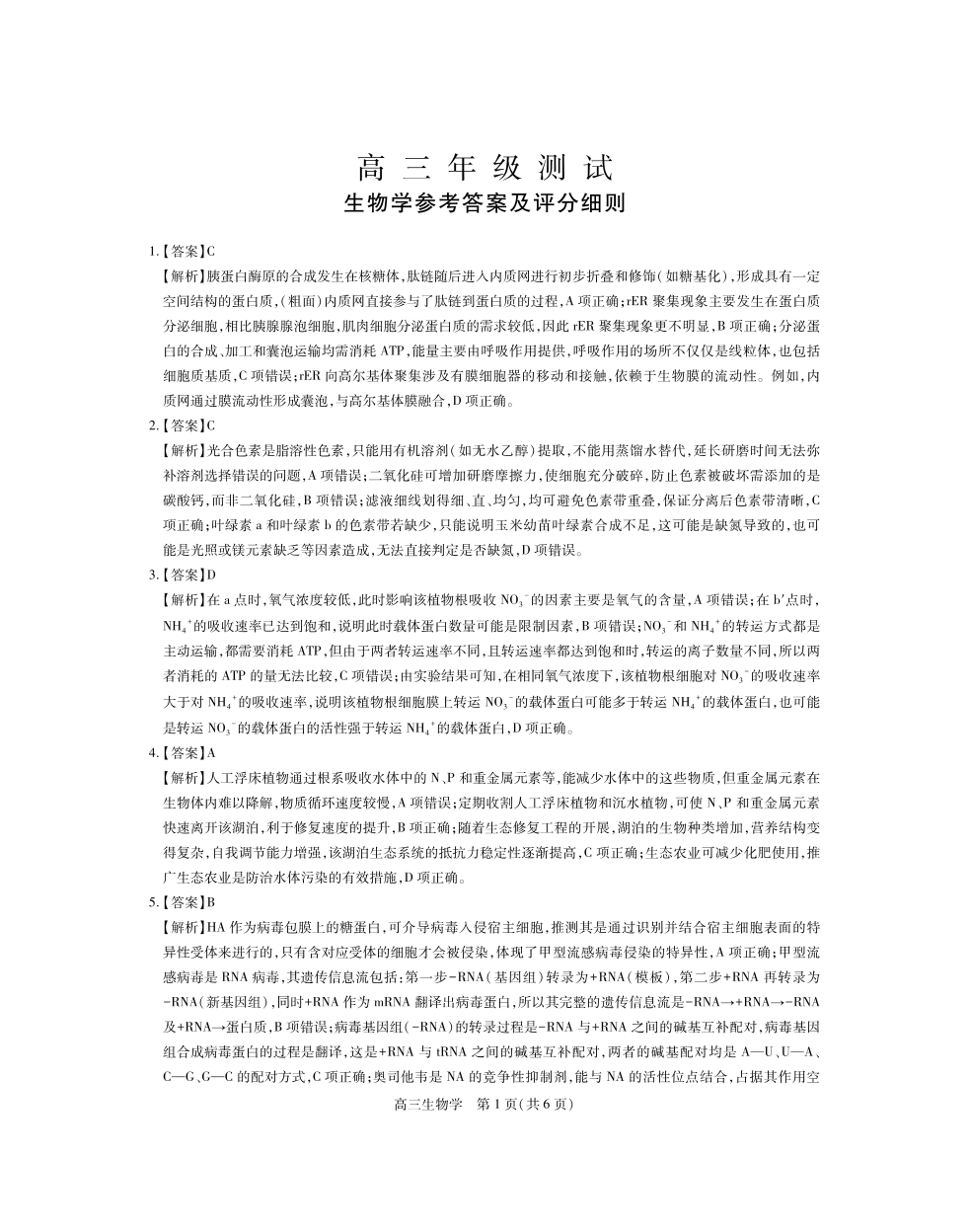 江西省上进联考2025-2026学年上学期1月高三年级测试·生物学答案.pdf