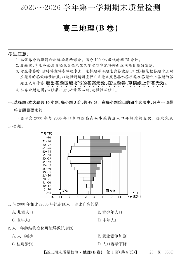 安徽省县域合作共享联盟2025-2026学年高三上学期1月期末质量检测-地理(B卷).pdf