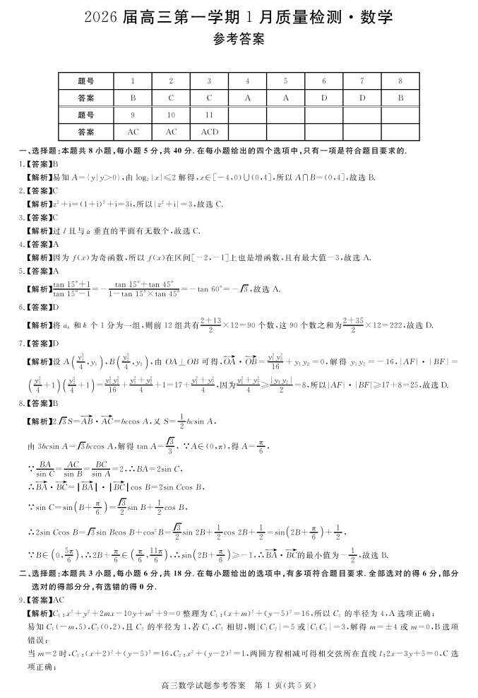 安徽省华师联盟2025-2026学年高三上学期1月质量检测-数学答案.pdf
