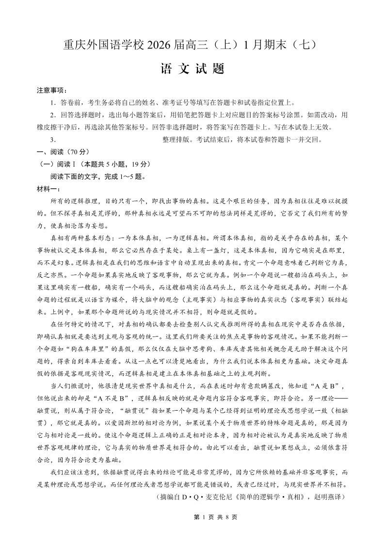 重庆外国语学校2026届高三(上)1月期末(七)语文.pdf