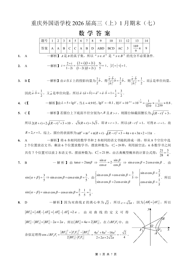 重庆外国语学校2026届高三(上)1月期末(七)数学答案.pdf