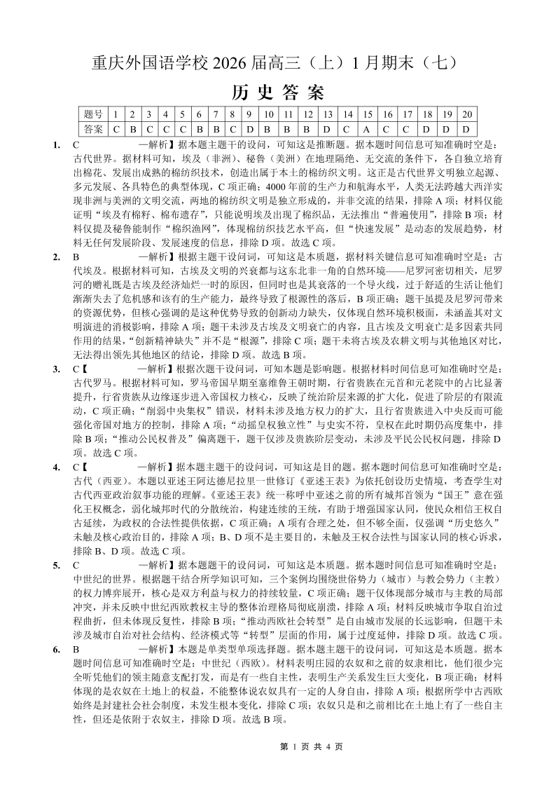 重庆外国语学校2026届高三(上)1月期末(七)历史答案.pdf