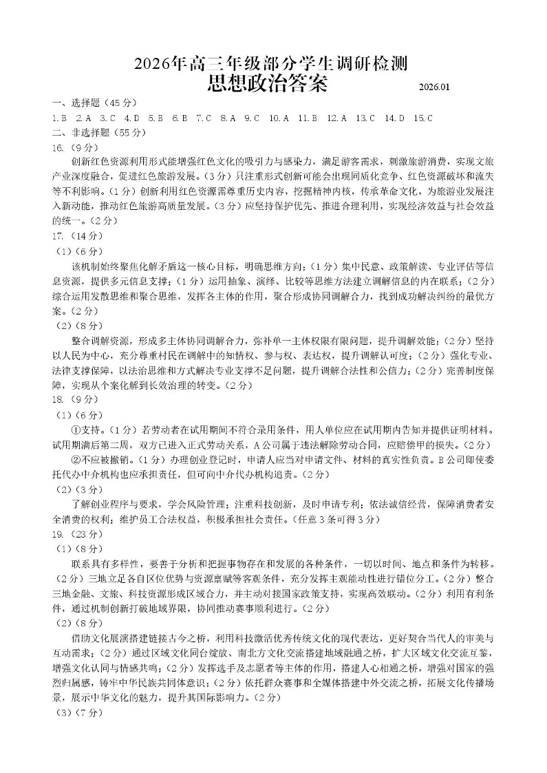 山东省青岛市2026年高三年级部分学生1月调研检测 政治答案.pdf