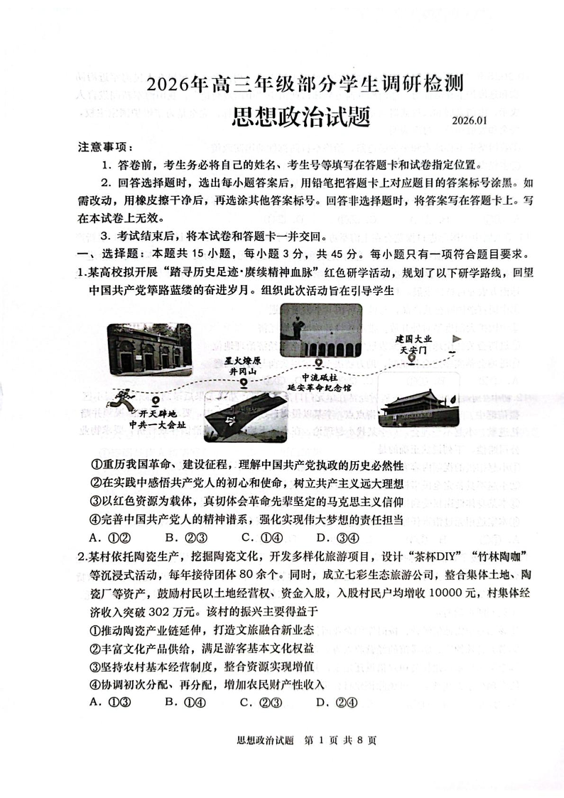 山东省青岛市2026年高三年级部分学生1月调研检测 政治.pdf