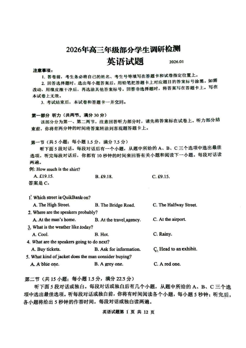 山东省青岛市2026年高三年级部分学生1月调研检测 英语.pdf