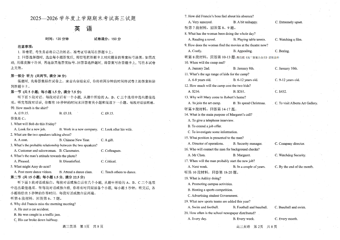 辽宁省协作校2025-2026学年度上学期高三年级期末考试 英语.pdf